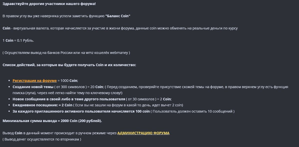 Кстати вот еще форум с такими же начислениями: https://forumcoin.ru/