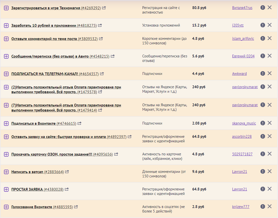 Могу порекомендовать надежную биржу, там платят не только за отзывы, но также есть задания на соцсети, приложения, маркетплейсы, просмотр видео, комментарии, голосования, регистрации.