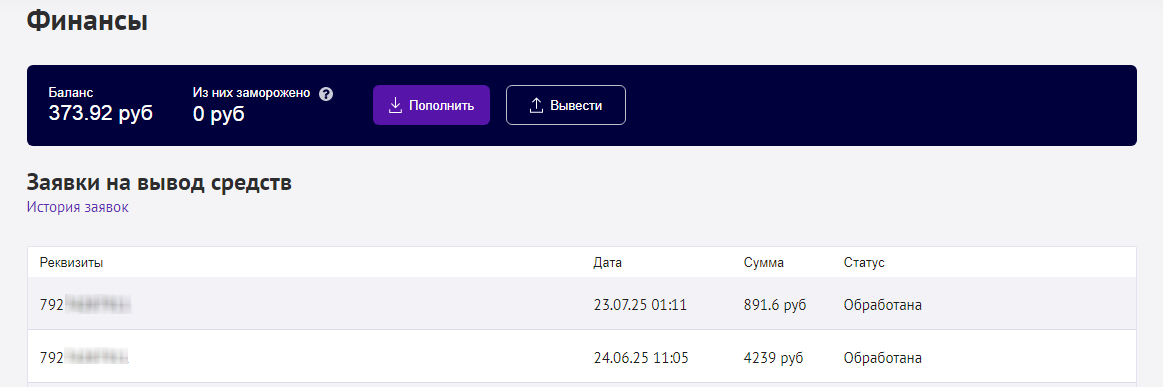 Средства зачисляются на баланс в боте после проверки задания и сразу доступны для мгновенного вывода.