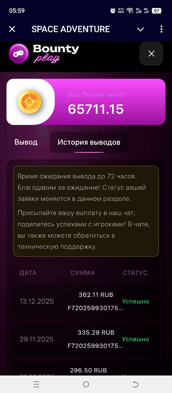 Вывод игровой валюты в реальные деньги можно произвести на платежные системы Payeer (RUB и USD) , на банковскую карту или на криптокошельки (USDT TRC20 или USDT ERC20)
