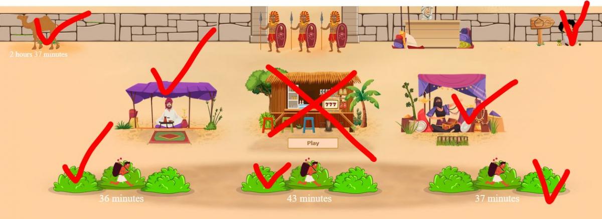 8. на ночь, чтоб не простаивал, можете отправлять работника на верблюде (внизу слева) за разным доходом.