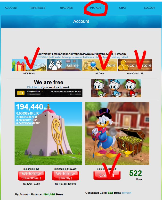 — кнопка "PTC Ads" тут много кликов и ежедневного серфинга, обновляемого в течение дня;