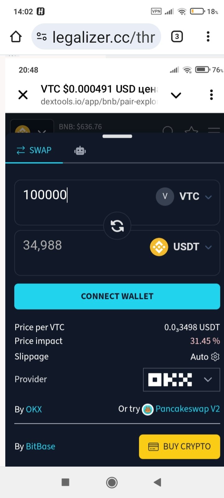 И сообщите администратору адрес своего кошелька bsc. В группе Ссылка. 100 000 VTC получаем на кошелек метамаск сеть BSC по сегодняшнему курсу это 34.9 usdt